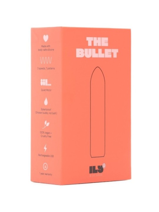 L' ILY Bullet est votre allié pour l'amour de soi, l'exploration en solo et le plaisir sans pression. Conçu pour vous, par des personnes qui comprennent.Pourquoi vous allez l'adorerCaractéristiques : Rechargeable : Silencieux mais intense, tout comme vos pensées nocturnes. Idéal pour les voyages : se glisse dans votre sac, votre poche ou sous votre oreiller (nous ne le dirons pas). Sans danger pour le corps + inclusif : conçu pour tous les types de corps, toutes sortes de bonnes vibrations. Résistant aux éclaboussures : les pensées sous la douche sont devenues bien plus intéressantes. Que vous soyez novice en matière de plaisir ou que vous vibriez déjà avec votre corps, ILY Bullet est là pour vous rappeler :Votre plaisir est votre bien-être. Votre corps mérite d'être exploré.