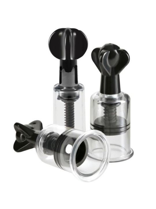 Si vous recherchez une aspiration intense sans utiliser de pompe externe, le trio Super Sucker en édition limitée de la série Fetish Fantasy est le choix parfait pour augmenter la sensibilité du clitoris et des mamelons. Doté de deux puissantes ventouses pour tétons et d'une ventouse cylindrique transparente, ce combo saura satisfaire vos zones les plus érogènes sans pompe à pression.Placez le cylindre transparent sur votre mamelon et abaissez la molette d’aspiration jusqu’à ce qu’elle touche votre peau. Les cylindres souples vous procureront une sensation agréable et resteront en place lorsque l'action commencera. Appliquez une forte pression sur le cylindre pour vous assurer qu'il reste fermement sur votre corps et tournez pour activer l'aspiration. à chaque rotation, la ventouse augmentera le niveau sanguin et aspirera votre mamelon et votre clitoris dans le tube. Une fois que vous avez dévissé et relâché la pression, vos mamelons et votre clitoris seront toujours durs et prêts pour tout ce qui se passera ensuite.Le meilleur est que cette pompe d’aspiration fonctionne sans avoir à utiliser une pompe d’aspiration externe. Si vous souhaitez profiter de l'apparence de vos mamelons, aréoles et clitoris et ressentir des sensations incroyables, cette ventouse est un outil indispensable pour réaliser vos fantasmes fétichistes. Largeur de la ventouse : 4 cm